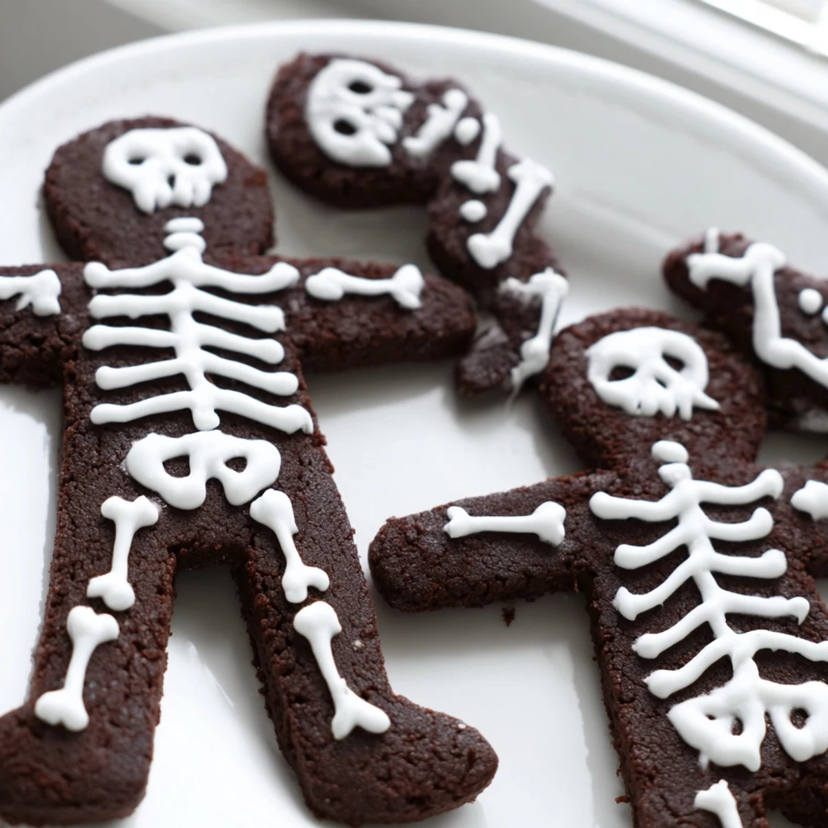 Create delightfully spooky treats with these rich chocolate cinnamon cookies shaped like skeletons. The dough combines cocoa powder with warm cinnamon for a deeply flavorful base that's perfect for cutting into festive shapes. After chilling and baking, decorate each skeleton with smooth royal icing to bring them to life.