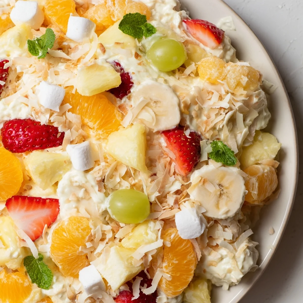 The summer heatwave had everyone craving something cool and refreshing at my sister's backyard potluck last July. I grabbed whatever fruit looked decent at the market and threw together this creamy, tropical salad in about ten minutes flat. My cousin Sarah actually went back for thirds and demanded the recipe before she even finished her first bowl.